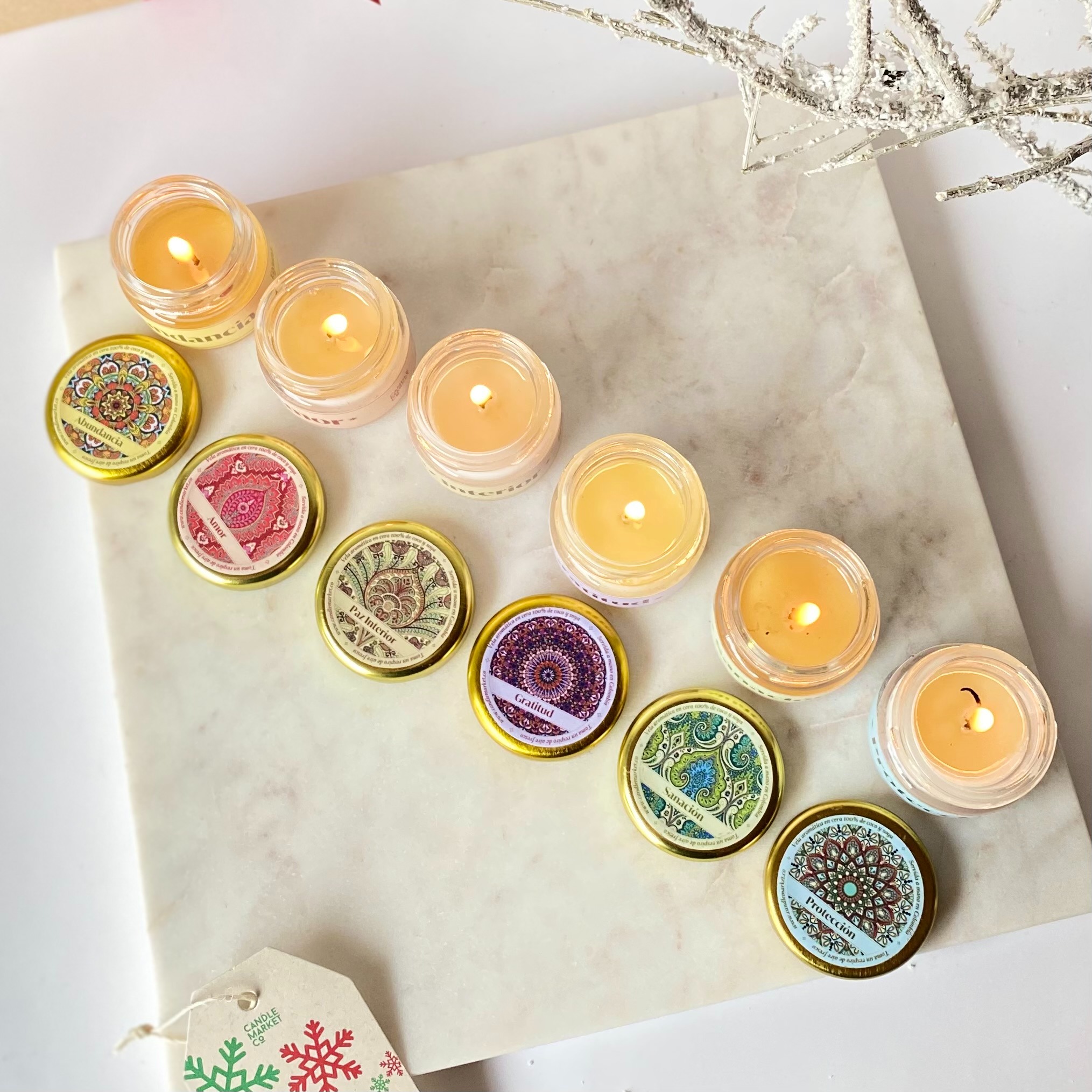 Este kit contiene 6 velas aromáticas de Intenciones de 30 gramos de cera 100% vegetal de soja y son fundidas con aromas selectos. Este kit viene empacado en una exclusiva caja de regalo, ideal para sorprender a quienes más quieres. Si te interesa comprar este producto al por mayor, contactanos a través de nuestro chat de ventas de Whatsapp.