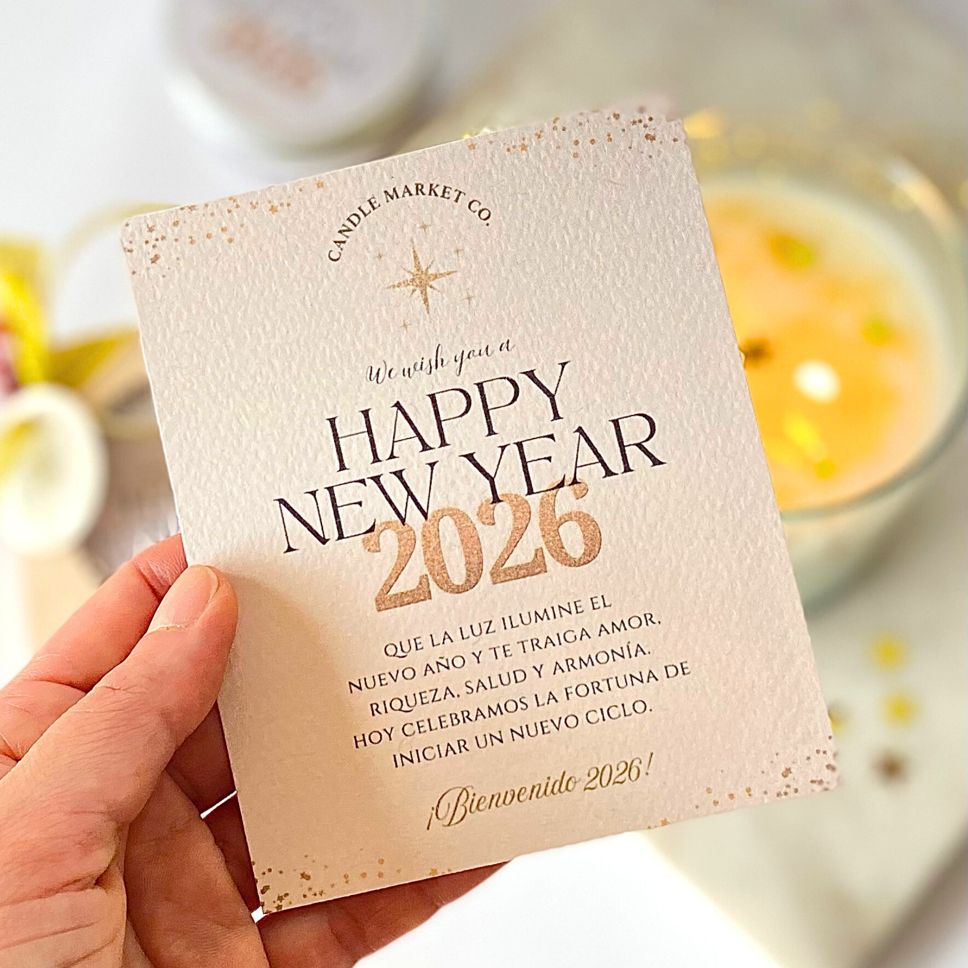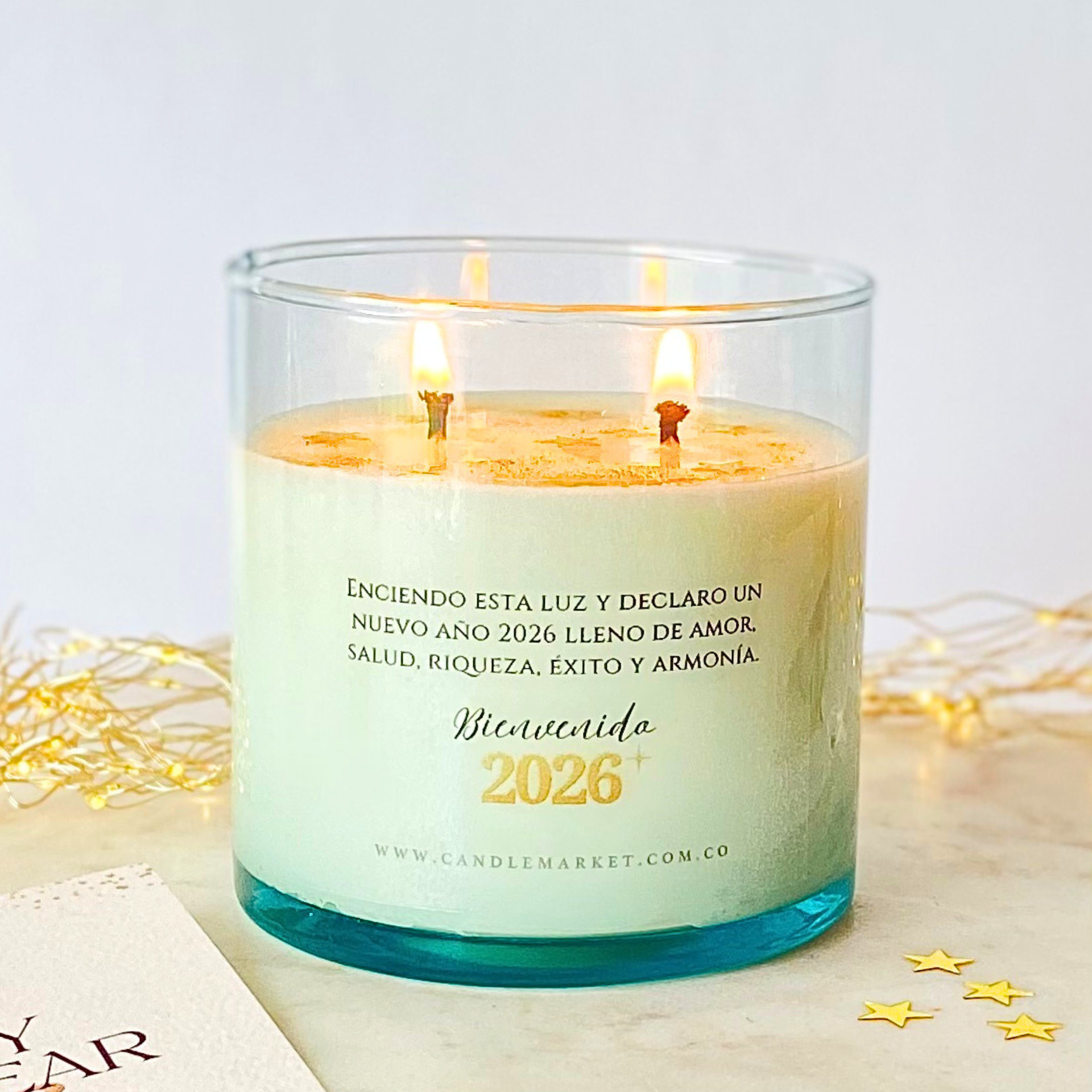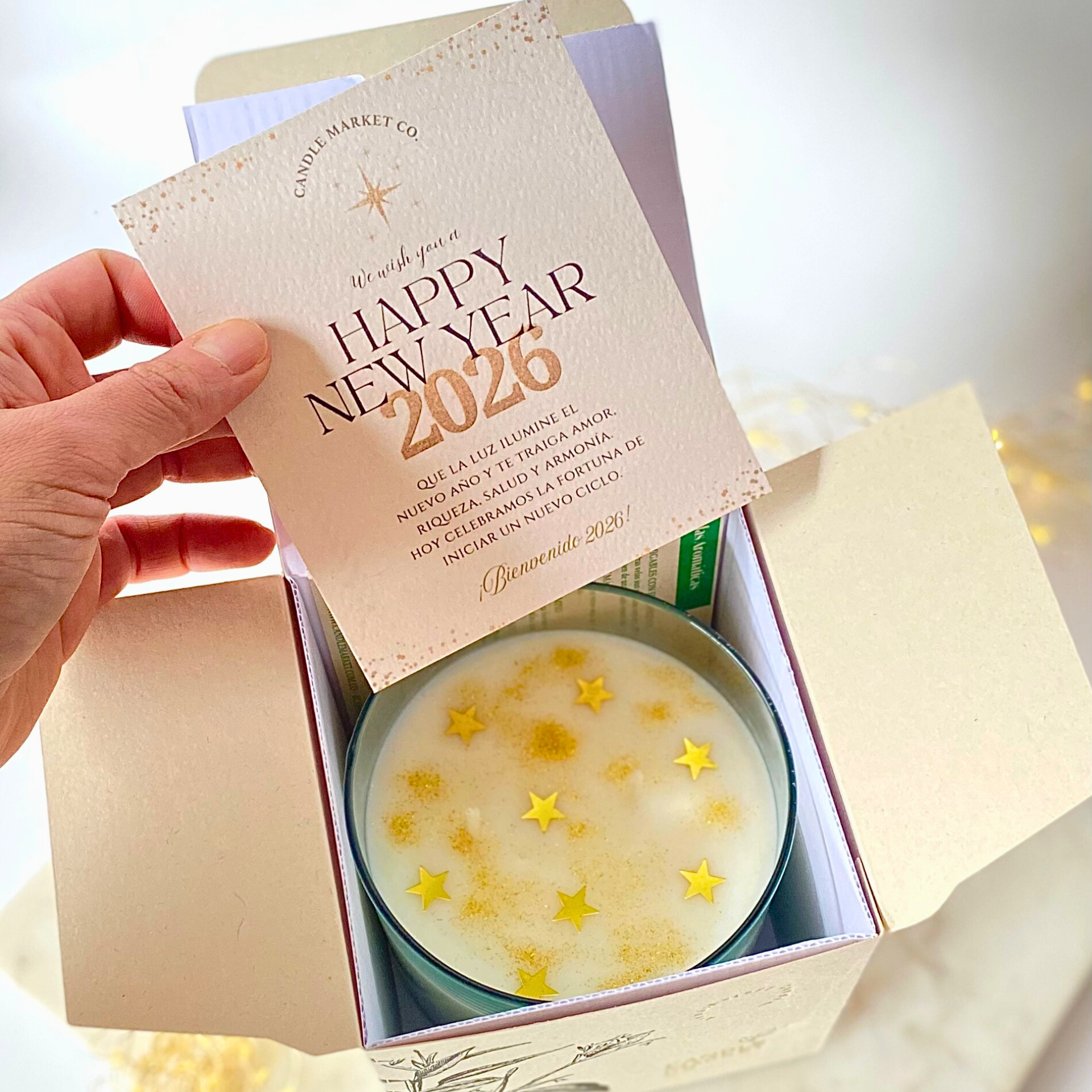 Por que queremos que empieces el nuevo ciclo rodeado de Amor, salud y abundancia hemos creado la vela Año Nuevo para que junto a quienes más quieres enciendas estas intenciones en 2026. Nuestras velas son creadas con cera 100% vegetal de soja y fundidas con aromas selectos. Esta vela viene empacada en una exclusiva caja de regalo, ideal para sorprender a quienes más quieres. Si te interesa comprar este producto al por mayor, contactanos a través de nuestro chat de ventas de Whatsapp.